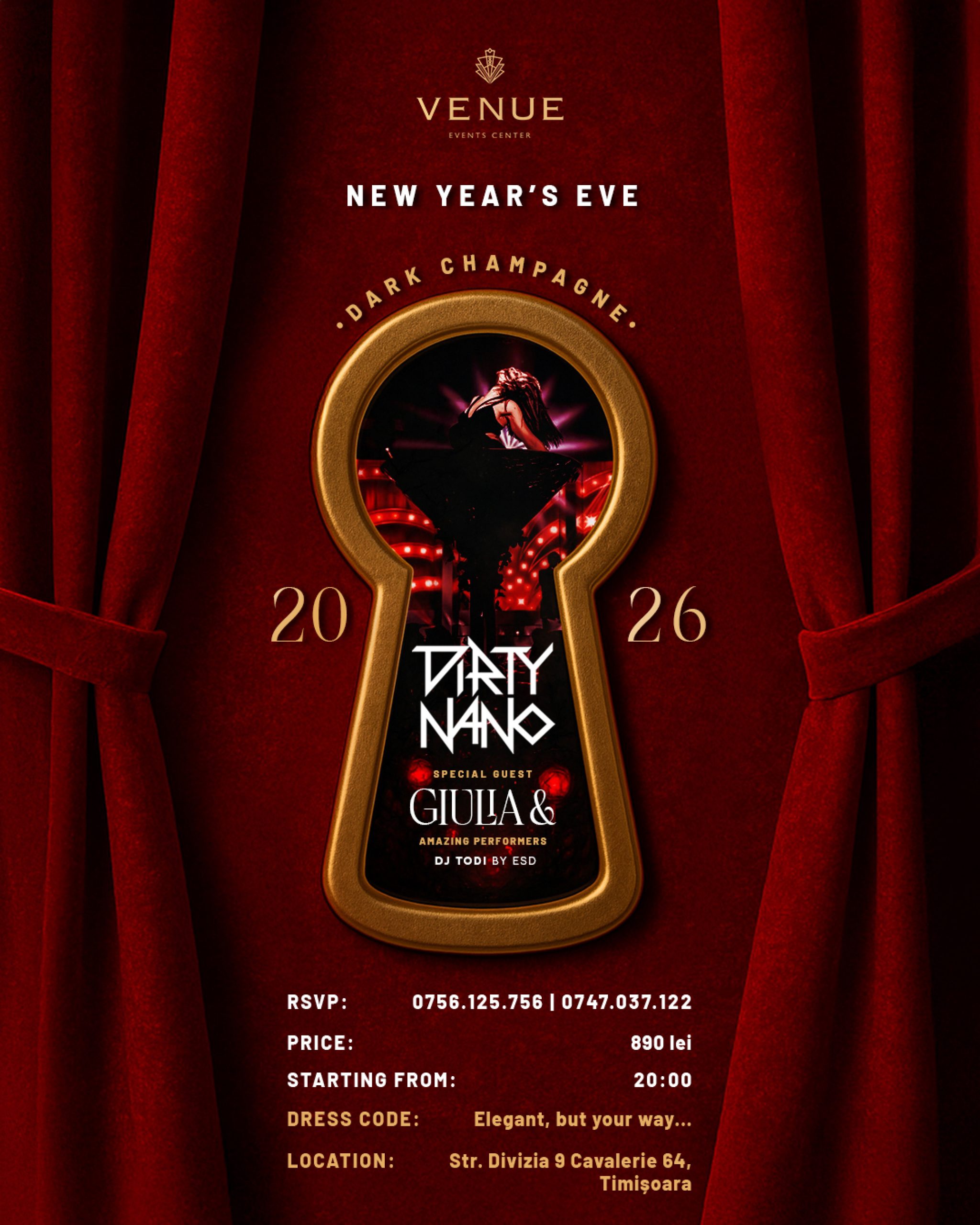 La VENUE, New Year's Eve devine o experiență completă, creată pentru cei care iubesc detaliile fine și atmosfera cu adevărat specială.